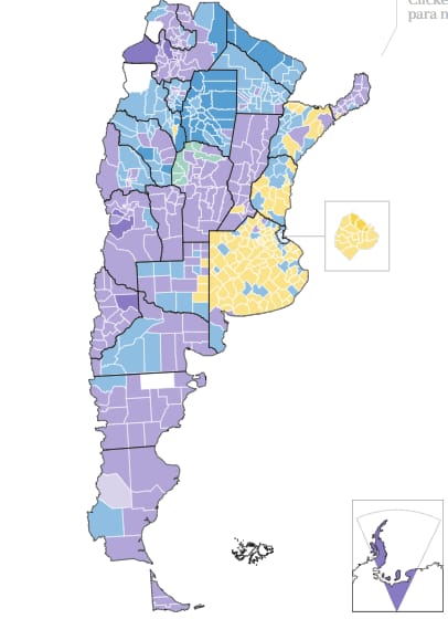 El mapa por municipios y departamentos